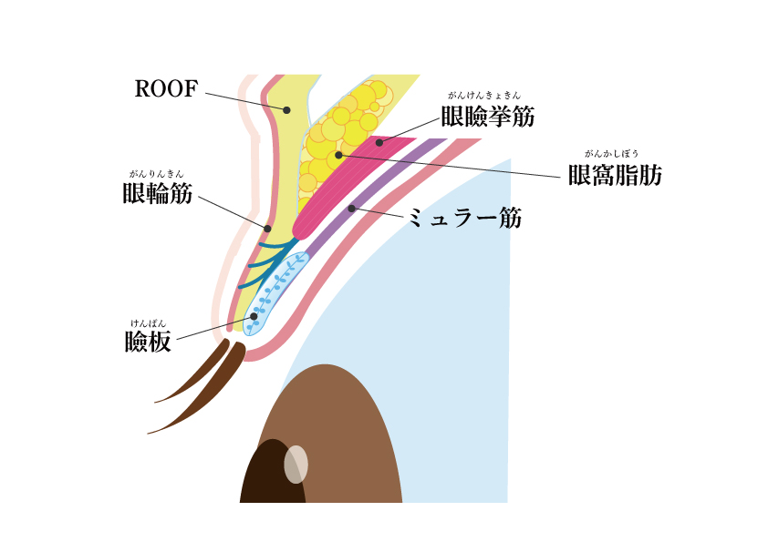 ROOF・・まぶたの 皮膚と眼輪筋のさらに下に存在する脂肪層