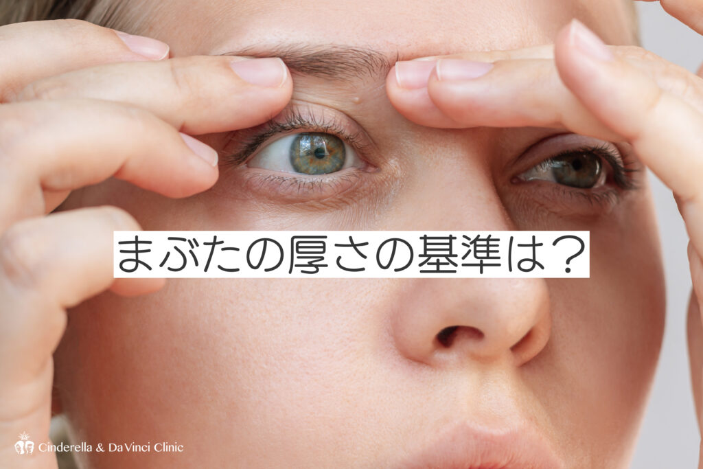 まぶたの厚さに医学的な数値基準はなく、脂肪や皮膚の厚みによって個人差が大きいものです。「厚い」「薄い」という表現も、あくまで見た目の印象によるものと考えられます。