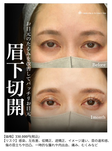 皮膚のたるみが主な原因の場合は、眉下切開や二重全切開法が効果的です。