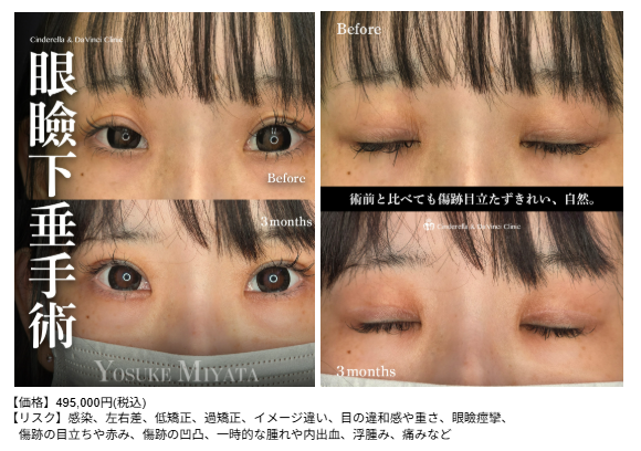 二重埋没法+脂肪取り+タレ目形成(グラマラスライン形成)+目尻切開+目の下の脂肪取り