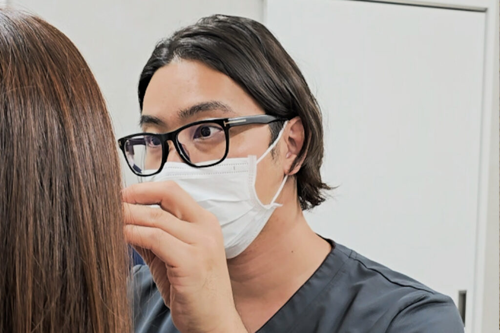 A他院での埋没法や切開法の修正についてもご相談をお受けしています。前回の手術内容・現在の状態によって対応可能な範囲が異なるため、診察でまぶたの状態を確認した上で、考えられる選択肢やリスクについて丁寧に説明します。