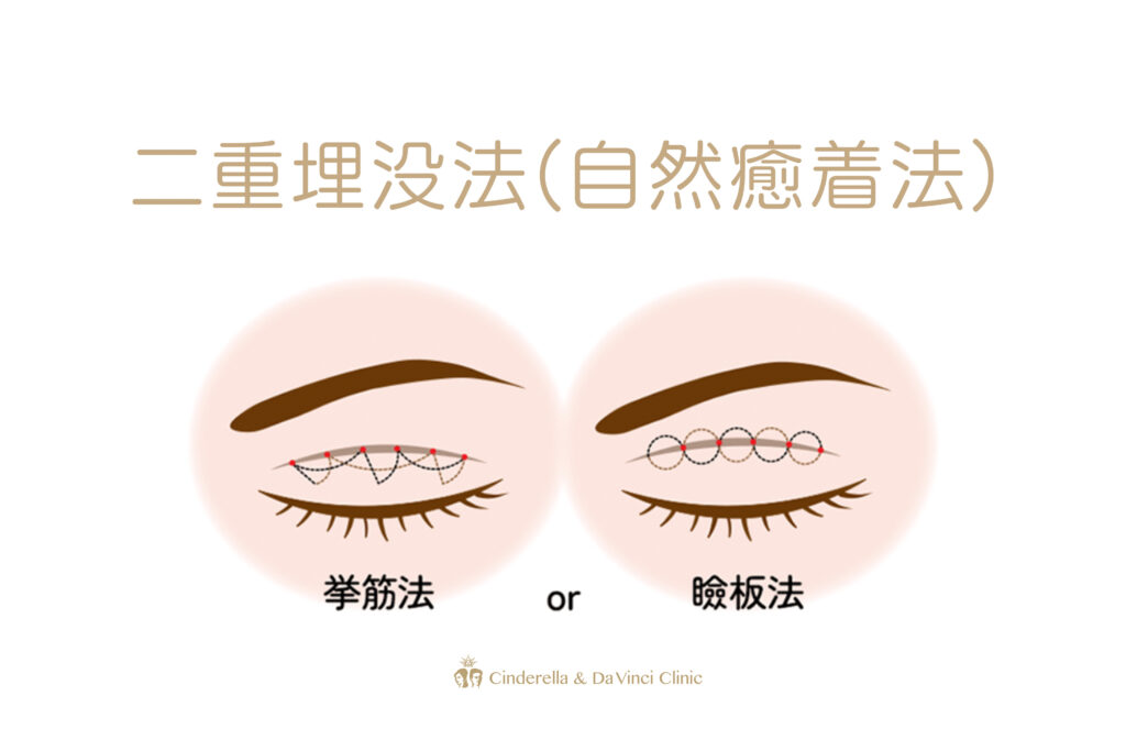 埋没法は、まぶたの数カ所を極細の糸で留めて二重ラインを作る方法です。皮膚を大きく切開せずに行えるため、
