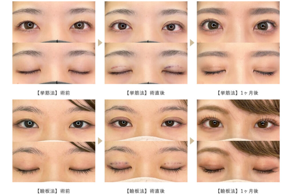 - ビフォー・アフターの写真が複数枚(目の開け・閉じなど)掲載されているか