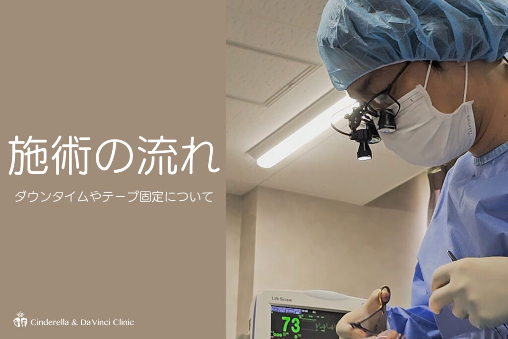 テーピングはご自身で続けていただくセルフケアですが、きれいな形を長く保つための大切な一手間です。カウンセリングや術後の診察で、実際の貼り方も丁寧にお伝えいたします。