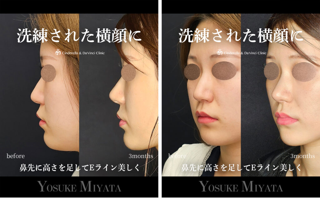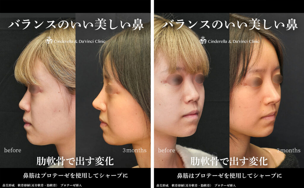 鼻尖形成・耳介軟骨移植・肋軟骨移植・プロテーゼ・貴族手術などを、お一人おひとりの骨格やご希望に合わせて組み合わせることが重要です。