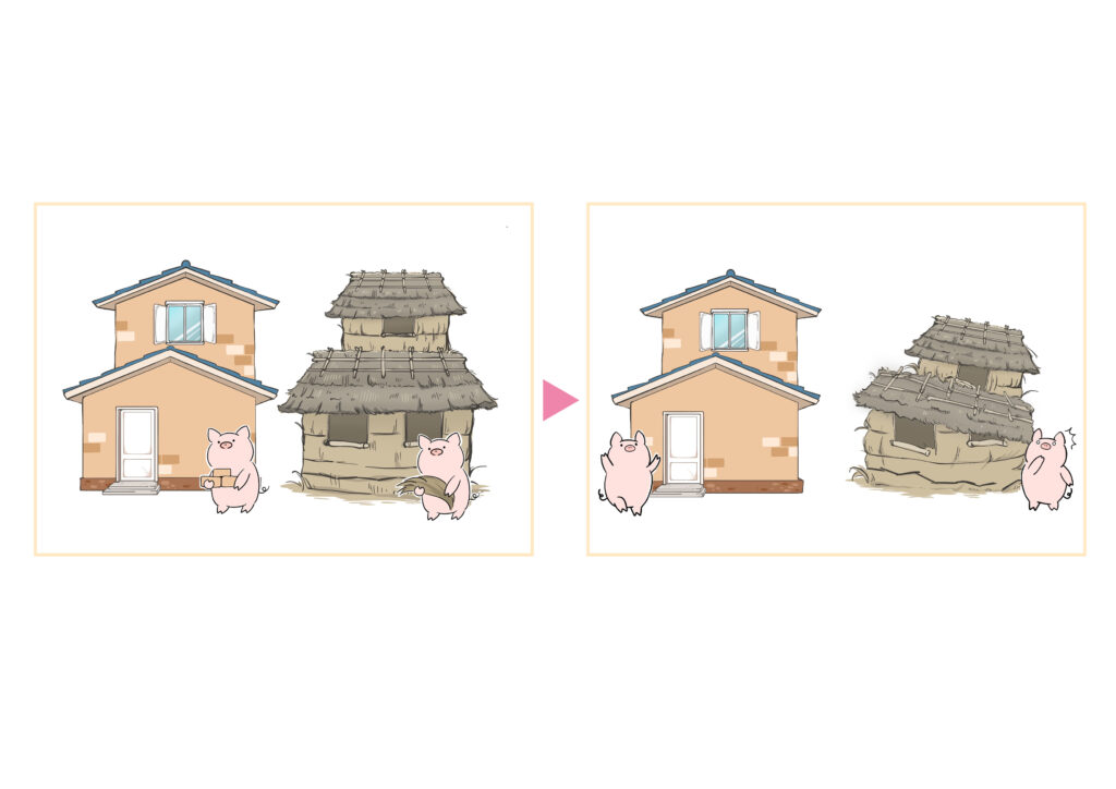 当院ではよく童話「三匹の子豚」のお話を用いて説明しています。
