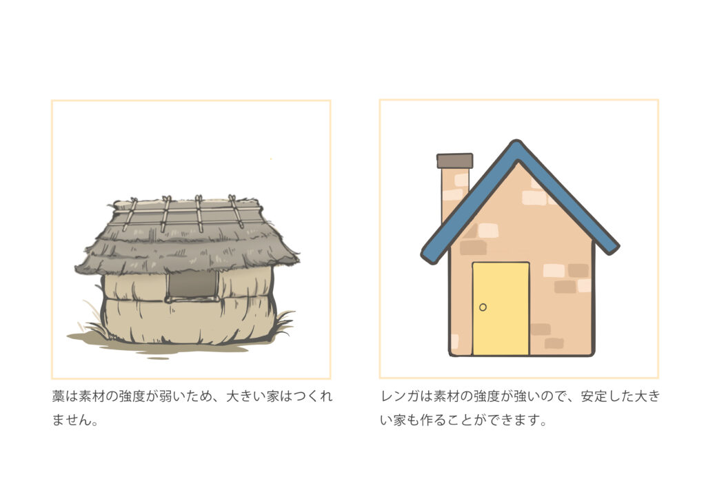 藁の家:柔らかくて大きな家を作るには不向き、崩れやすい