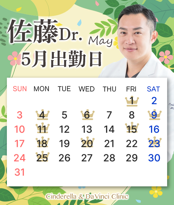 5月度もシンデレラ&ダヴィンチクリニックをよろしくお願いいたします。