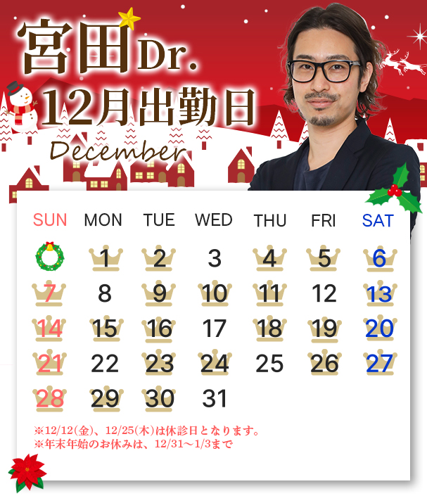 2025年12月のドクター出勤日をお知らせいたします。