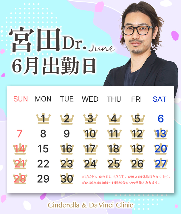 6月度もシンデレラ&ダヴィンチクリニックをよろしくお願いいたします。
