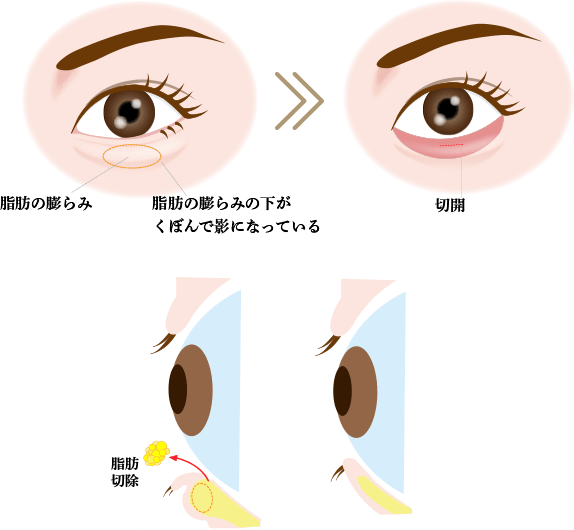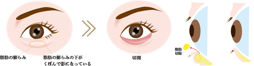 目の下の眼窩脂肪の膨らみを取り除くことで影クマを改善させる手術です。