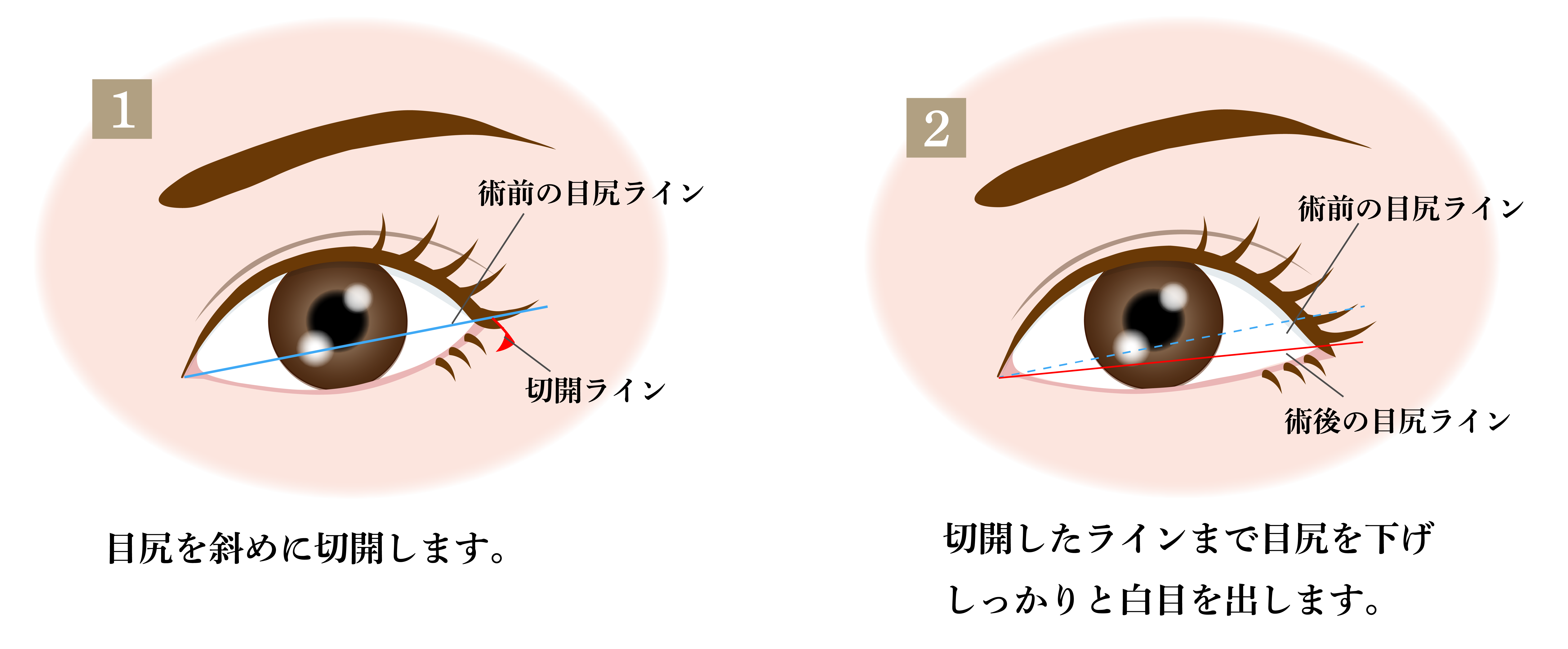 タレ目を作るように目尻を切開することで、
