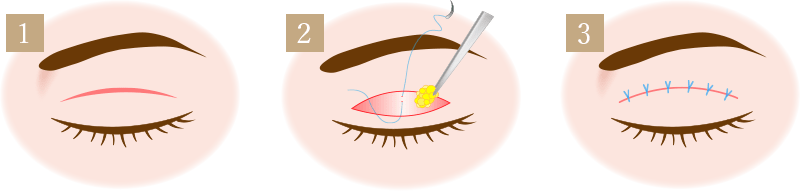 目頭から目尻まで皮膚を切開し、まぶたの中で二重の構造を直接作ることにより